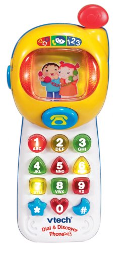 Baby can dial and discover a world of fun! This toy teaches numbers, colors, music, sounds and shapes. A favorite activity for babies is talking on the phone, and now they will learn while talking. With the press of a button, the light-up screen magically changes images activities. Realistic phone sounds and conversational phrases give baby a fun role-play experience. Automatic shut-off preserves battery life. Durable design for long-lasting play. Requires 2 "AA" batteries (not included).