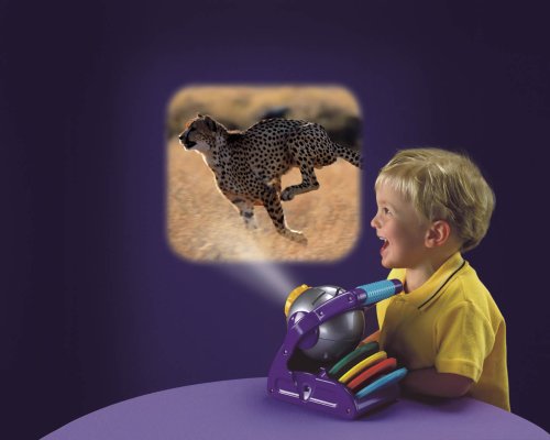 I bought this toy as a Christmas gift for my 3 and 4 year old daughters. They love it and I happen to think it is pretty cool, too! It has become part of our bedtime routine. Every night at bedtime we pick our "movie" and the girls lay quietly listening to the "story". The projector comes with only one demo reel, so you must purchase others separately. I recommend the Discovery Channel reels-I only wish they had more to choose from. The thing that makes this toy cool is that it projects the images on the ceiling (or wall) and if you buy the reels that have sounds, you will hear several interesting facts as the pictures are displayed. You can choose to have the projector automatically advance to the next picture, or you can do it manually. All in all a great toy with some educational value and a great way to get the kids settled into bed.