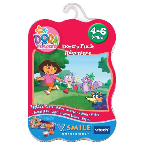 - Come on! Help Dora and Boots find the missing parts of the Air-Car-Boat-Mobile for Tico before Swiper the Fox gets them first! Along the way kids will learn about shapes, colors, animals, numbers and logic so they can help Dora and Boots succeed.- Compatible with: V.Smile, V.Smile Pocket, V.Smile PC Pal, V.Smile Cyber Pocket and V.Motion gaming systems.