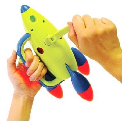 - Use a hand crank to charge up this super cool rocket ship- Hear a realistic countdown, watch launchers power up and finally blast off with flashing lights and cool sounds