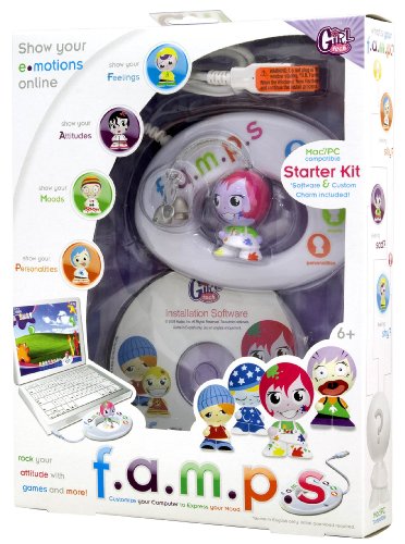 Unlock a world of emotion on your PC with FAMPS games, emoticons, screensavers and more. FAMPS allow you to create a unique emotional makeover for your desktop, e-mail and IM so you can express yourself in all kinds of fun new ways with your friends and family. Let your emotions run free with custom wallpapers, e-cards, avatars and more. Includes: software, mood bangle, 1 FAMPS, lanyard and 1 charm. Famps Starter Kit: feelings, attitudes, moods, personalities - Famps. Unlock a world of emotion on your PC with Famps games, emoticons, screensavers and more. Product Dimensions: 7.8 x 1.7 x 10 inches. Recommended for age 6 - 12 years.