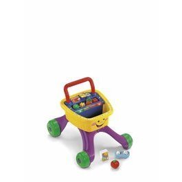 Let's go shopping! Baby can load up on learning fun while practicing walking skills. Music, lights, sing-along songs and lots of fun phrases reward different activities like sorting shapes, adding items to the cart, flipping pages on the shopping list, or just cruising up and down the "aisles!"