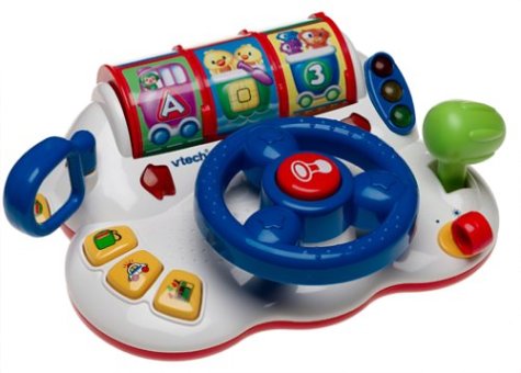 I usually like V-Tech, but this one missed the mark! My 1 year old liked it--for about 10 minutes. he'd play with it sporadically over the next few weeks, but I found myself hoping he wouldn't. The voice is a demanding little kid, screaming, "Outta the Way!" and "Fill 'er up!" I relegated the thing to the car, hoping maybe he'd like to turn the steering wheel when I drive, but the "on" switch is hyper-sensitive, and every time we'd go over a bump in the road, the !@#$ thing would turn on! And the worst part is, it doesn't have an auto-shut off feature. It just keeps making noise! Oh, and the volume is LOUD, too! Save your money!