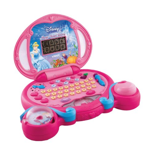 This carriage-shaped laptop allows your child to learn important preschool skills with Cinderella herself! Features a full QWERTY keyboard with fun learning games teaching letters, numbers, music and more. Learn letters, numbers, logic skills and music with the Princess Magic Wand Laptop. This carriage-shaped laptop allows your child to learn important preschool skills with Cinderella herself! Play the games using the cursor mouse or use the magic wand stylus pen.