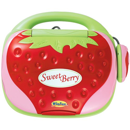 - Bilingual learning laptop (English/Spanish) with 22 interactive activities in each language- Press the button to reveal a strawberry-scented keyboard and screen