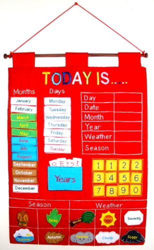 I got this calendar to help my 4 year old boy learn his days/weeks/months. It's just the right size to have on the wall, the years go from 2010 to 2015, and the pieces are well made. My only complaint is that my 2 year old takes off the velcro pieces all at once, but they are bright and easy to find. I've had this calendar for about 1 month now and we've used it every morning and haven't lost a piece yet. it's a great prompter to review what day yesterday was and what day today is, how many days of school are left, how long year is... Overall a great buy!