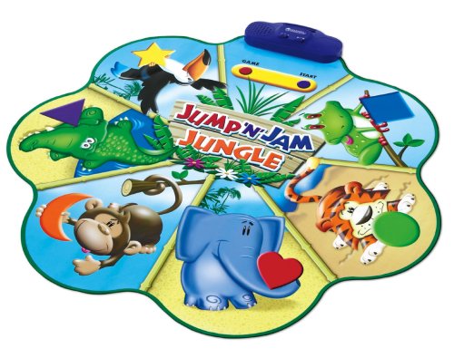 It's a jungle out there! This interactive floor mat keeps kids moving as they follow directions, make patterns, recognize shapes and match animals to their sounds. Exotic animal characters encourage curiosity about wildlife through play. Durable vinyl mat with adjustable volume measures 32" in diameter. For 1-6 players. Requires 4 "AA" batteries, not included.