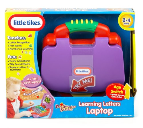 Little Tikes Learning Letters Laptop Introduce your child to the world of computers with a vibrant laptop that matches their skills at every level! Little Tikes Learning Letters Laptop provides hours of letter and number play and learning with awesome animations and funky sounds to keep kids engaged. The Little Tikes Learning Letters Laptop features a large LCD screen and 26 letter keys with colorful pictures that match the animations, to aid letter association. 10 number keys also provide additional animations!