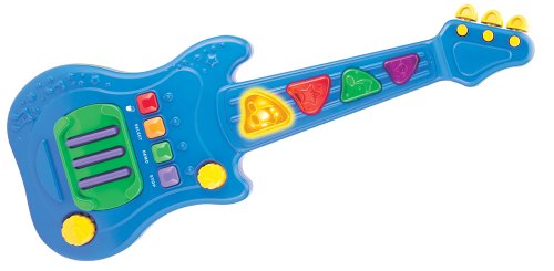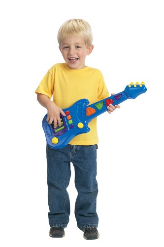 This toy was attractive and interested a four year old for about ten minutes, but the sounds it made were not very loud and it was difficult to operate. The Rockin' Riffs Guitar needs a strap of some sort. A very young child cannot hold the thing and operate it at the same time.