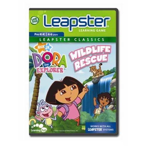 Leap Frog Leapster Dora the Explorer Wildlife Rescue Game Your little one will join Dora and Boots on a multilingual animal rescue in Leap Frog's Leapster Dora the Explorer Wildlife Rescue Game. Compatible with all Leapster Learning Systems, 5 educational games and 3 interactive storylines teach letters, phonics, counting, animal facts, Spanish and English vocabulary, and more. With the Leapster2 Game System, players can go online for extra activities and rewards, while parents can connect to see what their child is learning.