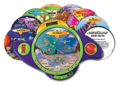 Mind Quest is an exciting electronic quiz game that introduces children to a variety of concepts including mathematics, language, science, logic and more. Simply place one of the 35 double-sided cards in the unit, program in the card number, and the unit will guide you through the quiz. It has a two-player mode so kids can compete with their friends. Add-on card sets expand your knowledge, sold separately. Requires 3 "AA" batteries, included.