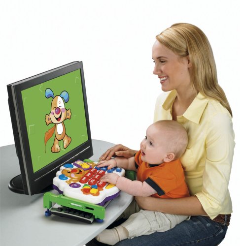 - A baby appropriate keyboard topper sits over a standard computer keyboard so baby can tap on the colorful- Fun animation, friendly characters, music and sounds reward baby, while learning letters, numbers, colors, shapes and lots more