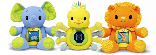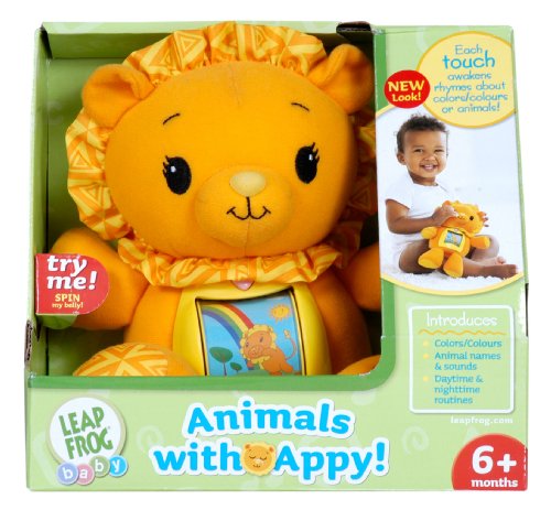 Sing along with this lovable lion and learn about colors, animal names, animal sounds and more. Spin Appy's belly to a daytime scene to move to his active song or to find all the colors of the rainbow with him. Help Appy say "good night" to his animal friends before drifting off to sleep. Touch and hold Appy's heart for five seconds for quiet time and five minutes of soothing light. Requires 3 "AA" batteries, included. Measures 8" tall.