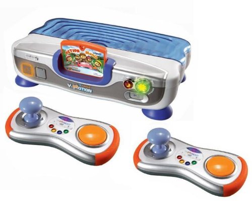 Put your child in motion while teaching lessons in math, reading, science, spelling and more with the V.Smile V-Motion TV Learning System! V.Smile V-Motion is a brilliant breakthrough gaming console that combines wireless, motion-activated play, web connectivity and educational gaming into a system that plugs directly into your television. Get into the game with all your child's favorite characters including Scooby-Doo, Thomas the Tank Engine, and Spider-Man, as well as new characters like Kung Fu Panda, Wall.E and Wonder Pets. Your child will love the wireless, action-packed play with all their friends to guide them through age-appropriate skill levels and developmental activities. The exciting "Action Mania" Smartridge comes with the console. Also includes: V-Motion console, 2 wireless controllers, and V.Link for online bonus play.