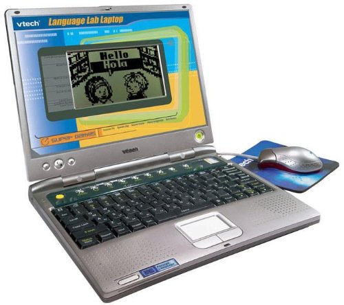 It's a language tutor at your child's fingertips. This notebook computer, with a gray-scale LCD screen, plug-in mouse and QWERTY keyboard, is specially designed to promote learning in a foreign language. With voice recording and playback functions, Language Laptop engages young learners in more than 100 exciting interactive activities that teach phonics, reading, writing and conversation skills in a second language.