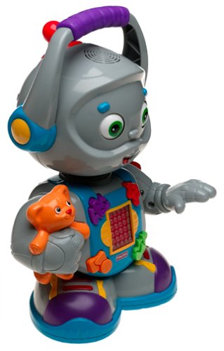 The ideal learning buddy for your toddler, Toby is a playful robot that comes to life with moving head, eyes, waist and arm. Touch one of his buttons, and his screen lights up with letters, numbers and shapes. Toby can also sing and dance with kids and comes with three songs. Measures 12" tall. Requires 3 "AA" and 3 "C" batteries (included).