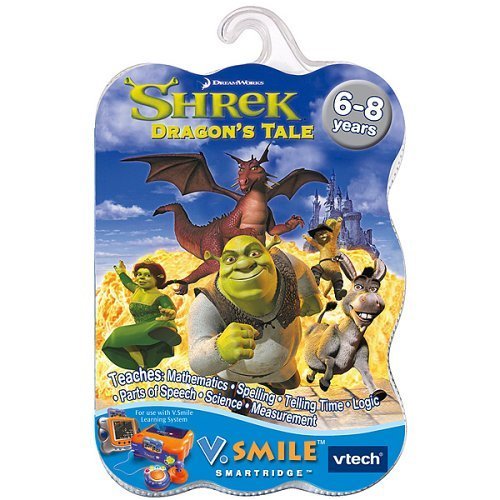 Uh Oh Dragon is sick, and it's up to Shrek and friends to find the medicine that will help him. Play as Shrek or Fiona and join Donkey and Puss In Boots for an exciting journey that will take you from the swamps to the castle and finally to the dangerous Lava Lake. Along the way, learn spelling, telling time, logic, sequences, directions, basic grammar, math and much more! Learning Adventure Games present a story and a goal for kids to accomplish through a series of six multi-curricular learning games. Four Learning Zone activities provide shorter learning games that are focused on a single curriculum. Each Smartridge works with V.Smile TV Learning System and the portable V.Smile Pocket. Smartridges provide age appropriate, educational, and non-violent game play.