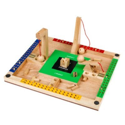 What goes up comes down with a lot more fun. This stack and destroy game is designed not only to utilize skill in wielding its three destructive devices-the ramp, the pendulum, and the catapult-but adds strategy for the builders. A simple roll of the die determines your method of destruction. Players take turns building and destroying the towers while trying to keep the destruction within the scoring zone. Using hardwood construction, this game is built to withstand the punishment and manage to maintain its good looks too. For 2 to 4 players ages 8 and up.