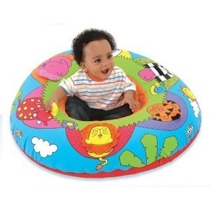- A soft padded velour playmat with four colorful smiley faces